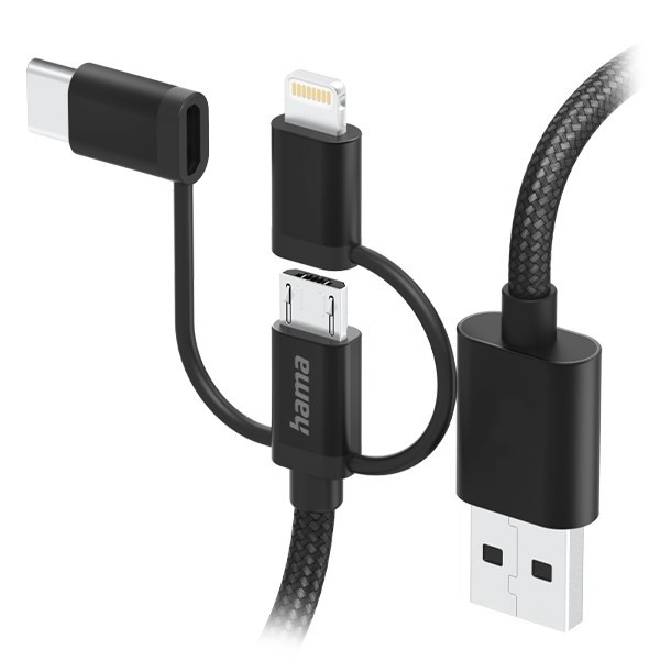 Adatkábel HAMA USB-A + Micro-USB/USB-C/Lightning 3in1 1,5m fekete