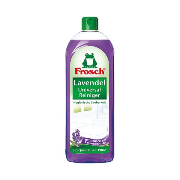 A Frosch levendulás univerzális tisztítószer kitűnően eltávolítja a zsíros szennyeződéseket. Használható padlón, a konyhában vagy minden lemosható felületen.