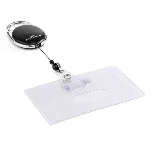 Azonosítókártya tartó DURABLE karabineres kihúzható 1 kártyához fekete