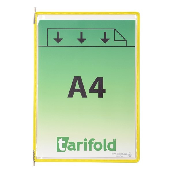 A bemutatótábla kiemelkedő minőségének köszönhetően flexibilis, strapabíró és rendkívül hatékony. A kétoldalú bemutatótábla a Tarifold tartókba tervezett prezentációs rendszerek részét képezi. A táblák műanyaggal bevont, acélhuzal kerete tartós és egyben rugalmas tartást eredményez. A tábla a fém forgócsapoknak köszönhetően a tartókba könnyen behelyezhető és eltávolítható. Alkalmas ipari üzemekben való használatra. A bemutatótábla védi a dokumentumokat a szennyeződésektől és a nedvességtől, ugyanakkor a dokumentumok könnyen cserélhetők.