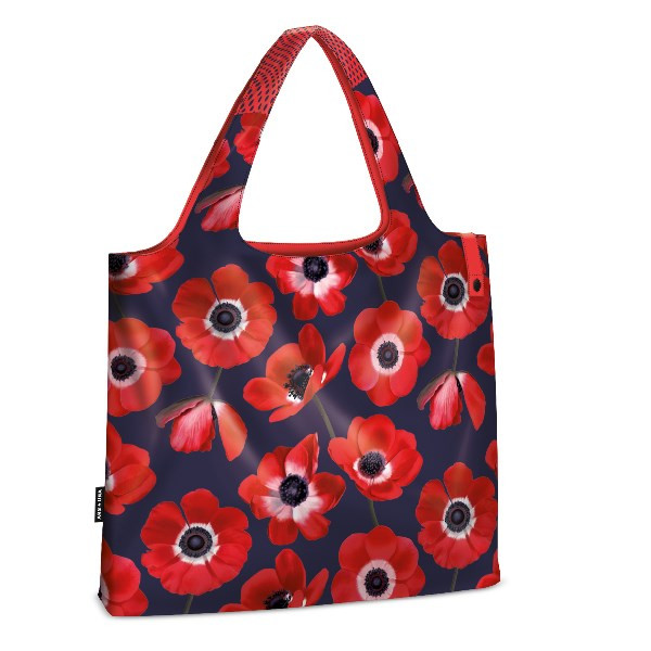 Bevásárlótáska újrahasznosított anyagból (egy táska kb. 3 db visszaforgatott PET palack felhasználásával készül), anyaga vízlepergető, 22 literes, 10 kg- os terhelhetőségű. A fül magassága 27 cm kényelmes, könnyen vállravehető. Praktikus, a plusz kis zsebbe összehajtogatható, így kis helyen elfér.Használható kézben hordva vagy vállra akasztva.