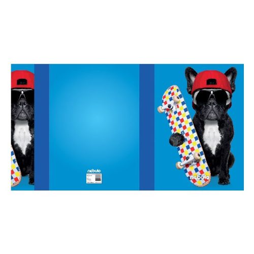 Füzetbox A4 méretű füzetekhez. Anyaga: karton. Méret (mm): 232 x 330. Gerincvastagság: 40 mm. Dizájn: deszkás bulldog