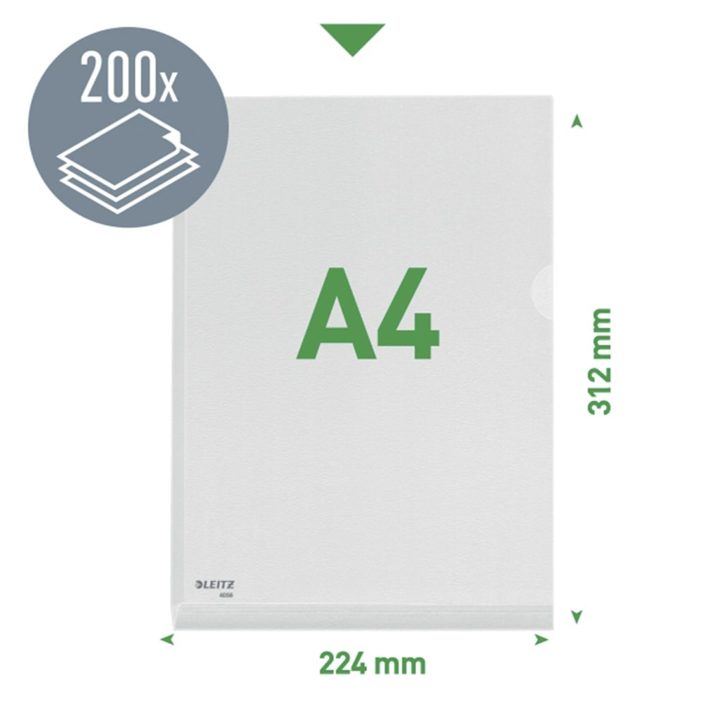 Kihajtható, megerősített gerinc terjedelmesebb dokumentumok, katalógusok tárolásához. 200 lap (80 g-os) kapacitás. Kiemelkedő teherbírású, 170 mikron vastag fóliából. Felül és jobb oldalon nyitott. A4 méretű lapokhoz.