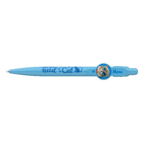 Cicás motívumokkal díszített nyomógombos mechanikával működő golyóstoll 0,8 mm-es kék színű golyósbetéttel.