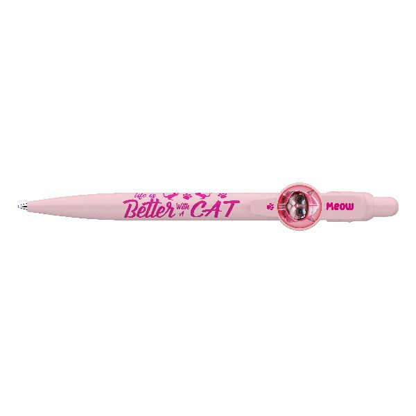Cicás motívumokkal díszített nyomógombos mechanikával működő golyóstoll 0,8 mm-es kék színű golyósbetéttel.