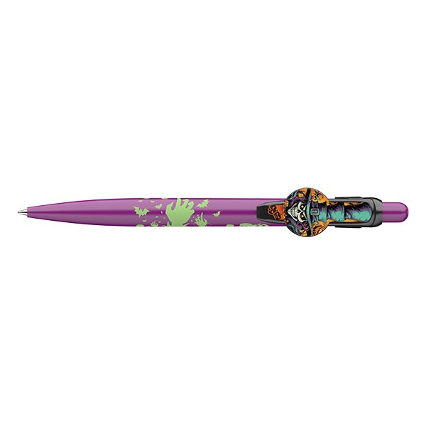 Halloween motívumokkal díszített nyomógombos mechanikával működő golyóstoll.