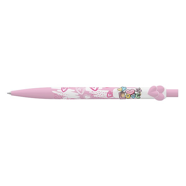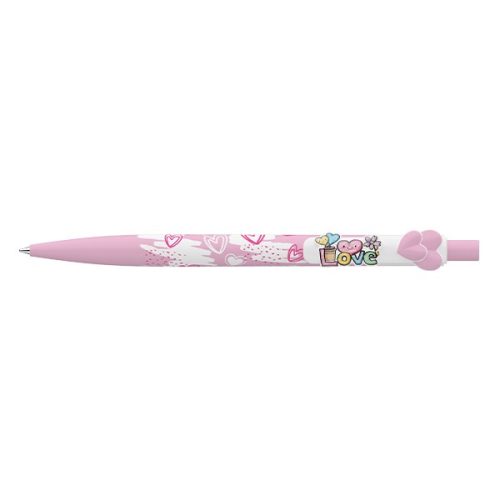 Nyomógombos mechanikával működő golyóstoll, amelyen szívecskés motívumok díszítik tolltestet és LOVE feliratú nyomat a klipszet. Cserélhető X-20-as kék színű golyósbetéttel. Írásvonalvastagság: 0,8 mm.