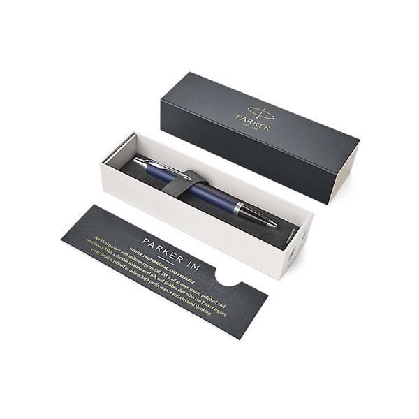 Professzionális és megbízható. Ideális partner, mely korlátlan lehetőséggel rendelkezik; az IM tollak egyszerre elegánsak, ragyogóak és közkedveltek. A tartós rozsdamentes acél hegy és tolltest a Parker örökséget visszhangozzák, minden részletében az írás élményére törekedve.