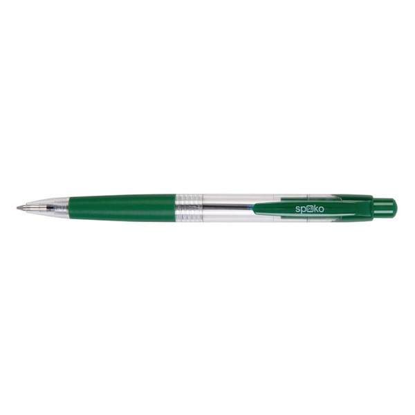 Golyóstoll SPOKO 0112 átlátszó zöld tolltest, zöld írásszín