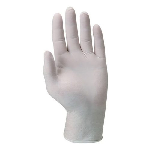 • Fehér színű, vékonyabb, egészségügyi, egyszer használatos latex védőkesztyű
