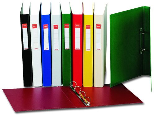Gyűrűskönyv a lyukasztott lapok helytakarékos tárolásához. Élénk színben, egyedi VIVIDA mintázattal.