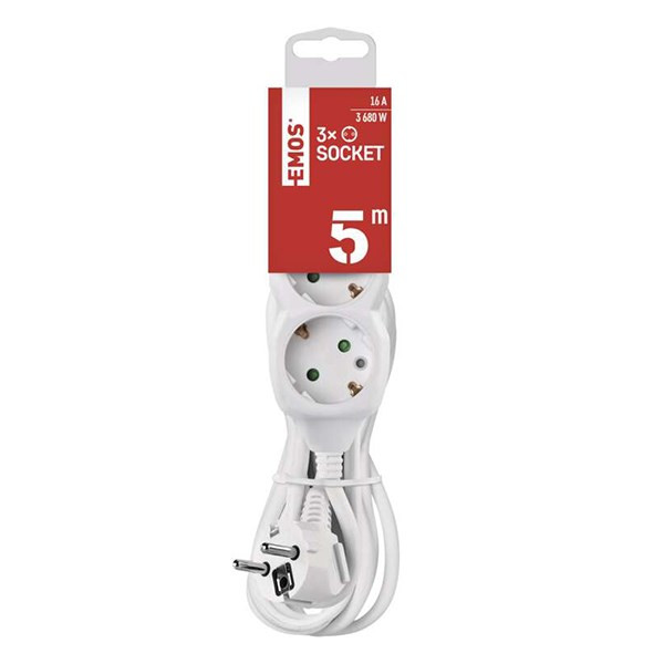Kábel hosszabbító EMOS 3 aljzat 5m fehér