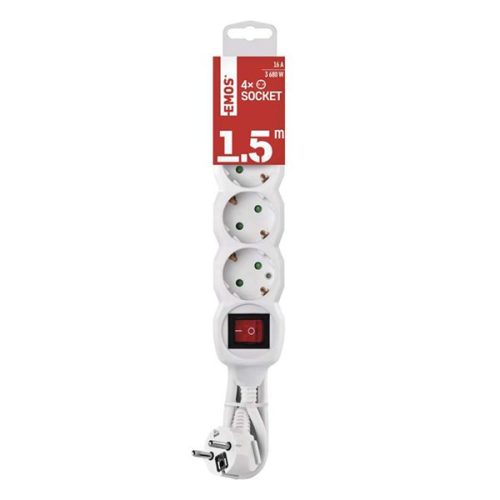 Kábel hosszabbító EMOS 4 aljzat 1,5m kapcsolóval fehér