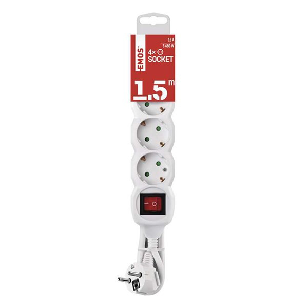 Kábel hosszabbító EMOS 4 aljzat 3m kapcsolóval fehér