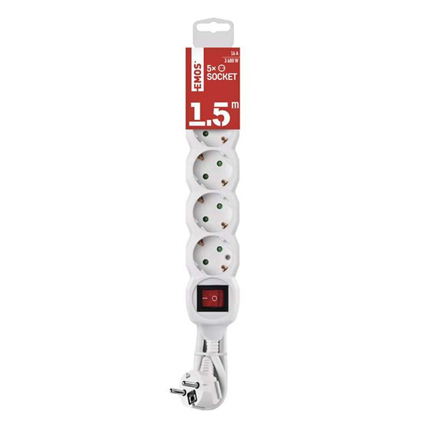 Kábel hosszabbító EMOS 5 aljzat 1,5m kapcsolóval fehér