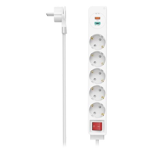 Kábel hosszabbító HAMA 5 aljzat + USB-C/USB-A 1,4m kapcsolóval fehér