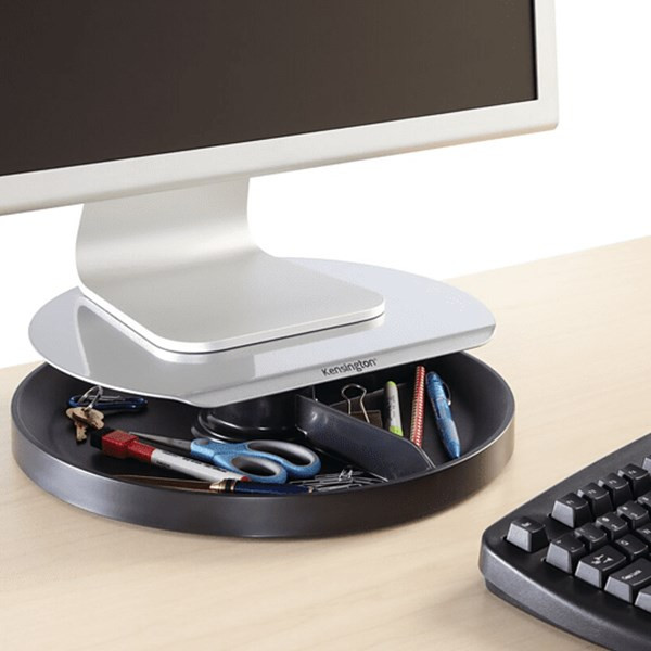 A Kensington SmartFit® színkódolt rendszere lehetővé teszi az ideális monitormagasság beállítását a személyes kényelem érdekében, a szabadalmaztatott, többrekeszes, 360°-ban forgatható tároló pedig segít a kisebb irodaszerek rendszerezésében.