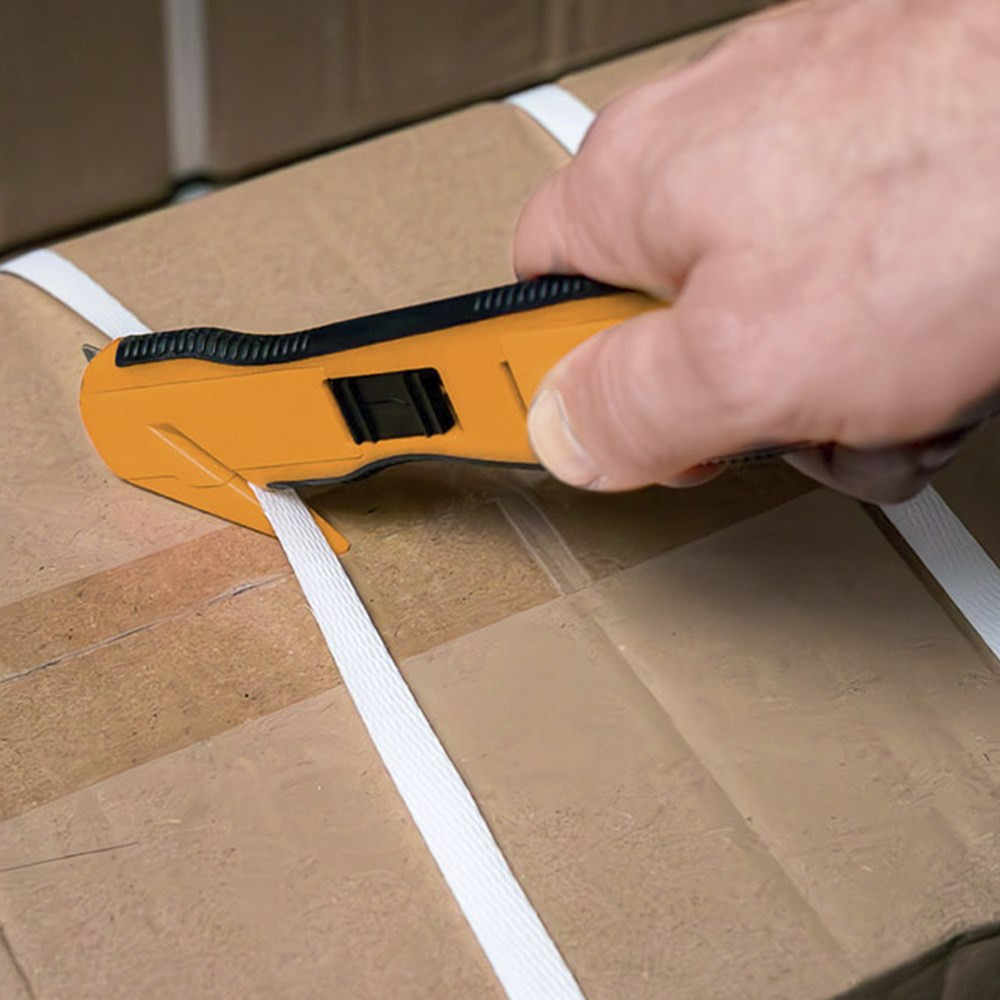 Műanyag fóliavágó 1 késsel, 2 részen használható.  Cserélhető betétes.