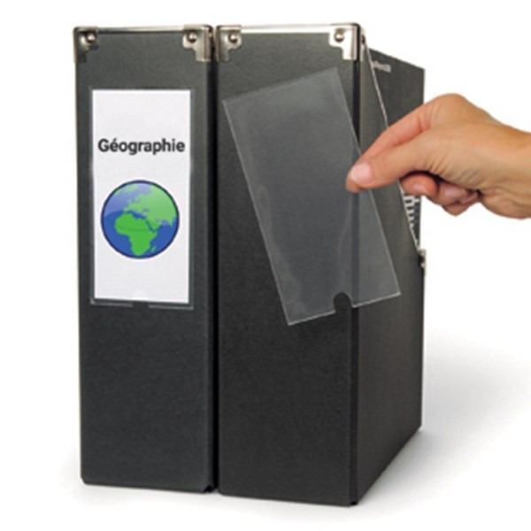 Praktikus, átlátszó, öntapadó, gerincjelölő címketartó tok iratrendezők-, gyűrűskönyvek-, iratgyűjtő mappák-, iratpapucsok gerinceinek jelölésére.