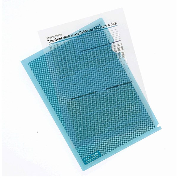 A polipropilén dosszié elejére és hátuljára nyomtatott speciális minta miatt a benne lévő dokumentumok nehezen olvashatók.