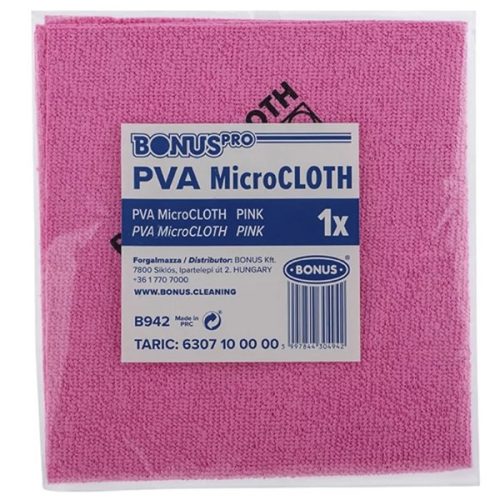 A Bonus PVA mikroszálas kendő két nem mindennapi anyag, a mikroszál és a PVA (polivinil-alkohol) kombinációja, amely egy vízoldható polimer. Különleges tulajdonsága, hogy megszáradva keménnyé válik, így elpusztulnak benne a kórokozók, ebből kifolyólag csak nedvesen érdemes használni. Összetételéből adódóan nagyon magas tisztítási teljesítménnyel rendelkezik, így jelentősen megkönnyíti a takarítást. Szinte minden sima felület tisztítására alkalmas, mint például üveg, tükör, rozsdamentes acél, műanyag és kerámia. A Bonus PVA mikroszálas kendő jó szolgálatot tesz a vendéglátóiparban és az egészségügyben, ahol a higiénia döntő fontosságú. Az anyaga ellenáll a szakadásnak és a kopásnak is, így ideális a nehéz takarítási feladatokhoz. A sima mikroszálhoz és a pamuthoz képest jóval nagyobb nedvszívó képességgel rendelkezik, így a kiömlött szennyeződések gyorsan feltörölhetők vele. Könnyedén leszámol a zsíros szennyeződésekkel, hatékonyan távolítja el az ujjlenyomatokat, port, zsíros foltokat és egyéb koszt.